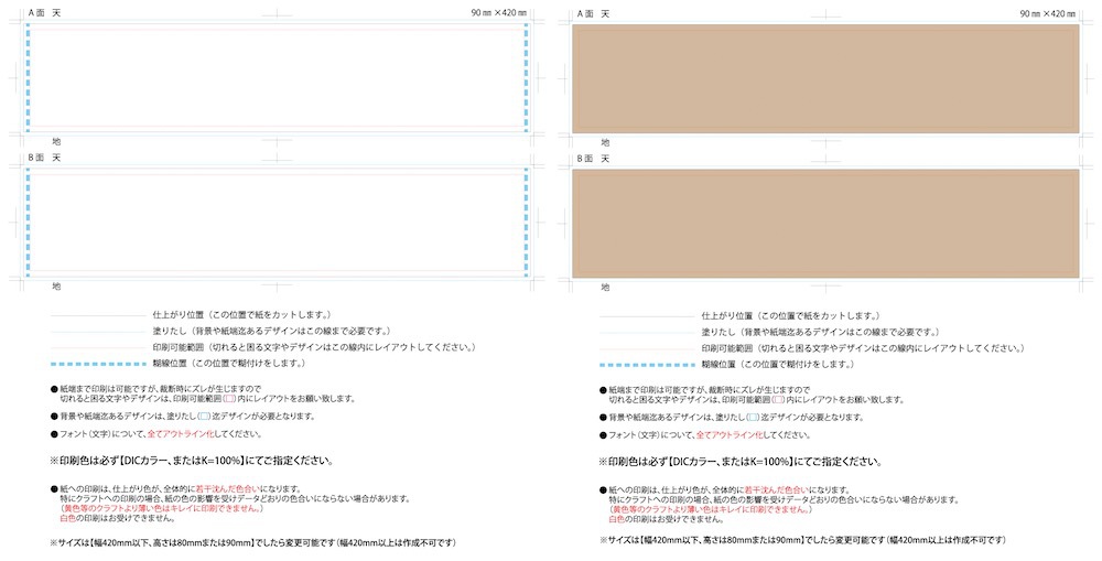 ・印刷色は必ずDICカラーまたはスミ(K=100%)でご指定ください。